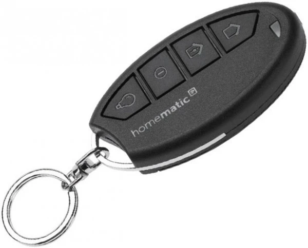Die Homematic IP Schlüsselbundfernbedienung ist Teil des Homematic IP Smart-Home-Systems und kann die Alarmfunktion alternativ zur Homematic IP App ein- und ausschalten. Die praktische, kleine Fernbedienung passt in jede Hosentasche, stellt aber, trotz der kompakten Abmaße, gleich vier Funktionen bereit. So kann wahlweise der Vollschutz aktiviert werden, bei dem alle vorhandenen Sensoren die eigenen vier Wände überwachen. Wird der Hüllschutz gewählt, warnen die Sensoren an Türen und Fenstern vor einem Einbruch, die internen Bewegungsmelder bleiben jedoch inaktiv. Somit kann auch bei Anwesenheit vor Einbrüchen gewarnt werden. Über den dritten Taster können der Hüll- und der Vollschutz deaktiviert werden. Soll das Licht ein- oder ausgeschaltet werden, kann der vierte Taster zum Einsatz kommen. Diese Komfortfunktion steigert vor allem in der dunklen Jahreszeit das Gefühl von Sicherheit beim Heimkehren. Wird eine Fernbedienungstaste betätigt, folgt eine direkte Bestätigung der Funkbefehle per Multi-Color-LED, welche ins Fernbedienungsgehäuse integriert wurde. Das glasfaserverstärkte, halogenfreie Kunststoffgehäuse widersteht auch harten Alltagssituationen am Schlüsselbund, wodurch es auch in Kinderhänden gut aufgehoben ist. Mit der Energie der zum Einsatz kommenden AAA-Batterie, kommt die Fernbedienung, auch bei täglicher Nutzung, für rund zwei Jahre aus.